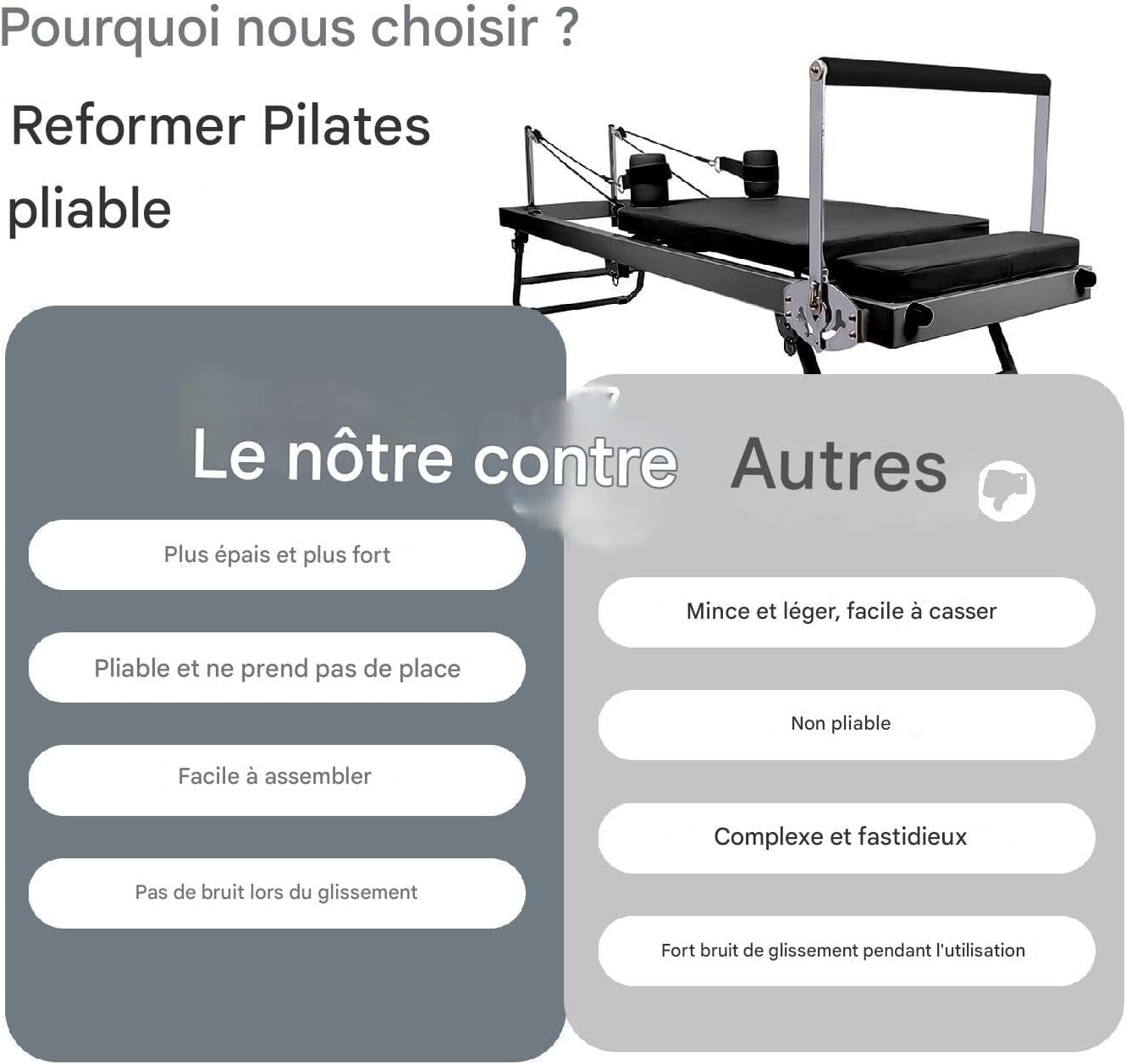 - Optimise l’efficacité de stockage: pliable pour le stockage d’économie d’espace. Profitez d’une configuration facile avec une installation rapide et un assemblage facile, en offrant un accès instantané aux séances d’entraînement Pilates