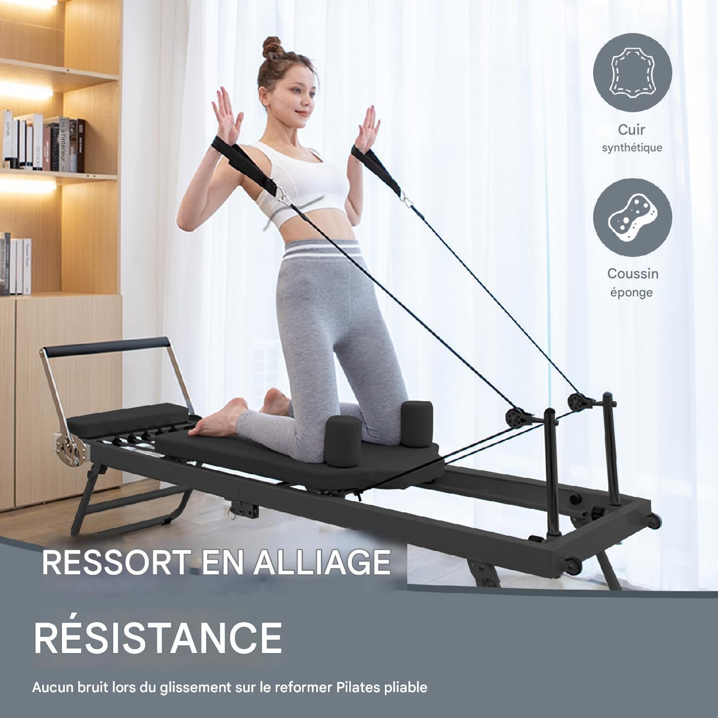 - Maximise la polyvalence: la machine Pilates reformer pliable est équipée de 5 ressorts métalliques améliorant l’exercice complet des muscles du noyau, de la hanche, des jambes et du dos
