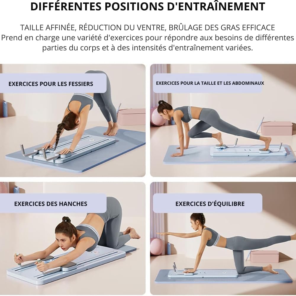 - ENTRAÎNEMENT COMPLET DU CORPS : cette planche Pilates multifonction cible efficacement les abdominaux, les bras, les jambes et le dos, tout en améliorant la flexibilité et l’équilibre pour une routine de remise en forme globale.