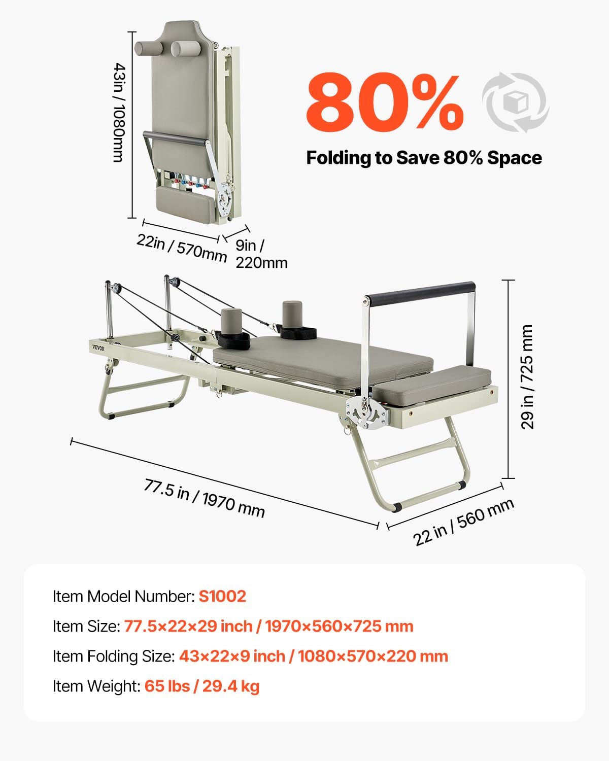 VEVOR Riformatore Pilates Pieghevole Réformateur Pliable Adulte Unisexe